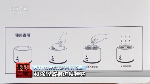 张正:涉嫌误导,比如说将除醛果冻的颜色变化和除醛效果进度挂钩,那实际上果冻颜色变化和除醛效果进度都是没有实际关联的。