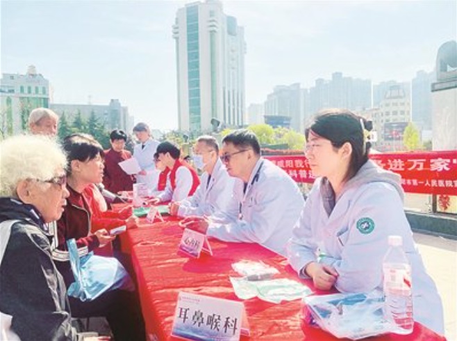 3月31日清晨,人民广场上,横幅在春风中轻轻摆动,“健康咸阳我行动 健康服务进万家”几个大字格外醒目。广场的一角,几张长桌整齐摆放,咸阳市第一人民医院把多个科室的专家“搬”出了医院大楼。心内科、眼科、耳鼻喉科、老年病科、康复科的义诊牌在广场上一字排开,血压计、血糖仪等设备整齐摆放,现场搭建起一座露天的“微型医院”,以接地气、有温度、聚人气的暖心志愿服务,把健康服务送到群众家门口,让文明新风吹遍大街小巷。