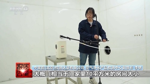 李轶:测试臭氧浓度的实验舱大概相当于家里10平方米房间的大小,我们会把待测的机器放在实验舱里,然后开启一段时间来测试它出风口的臭氧浓度。